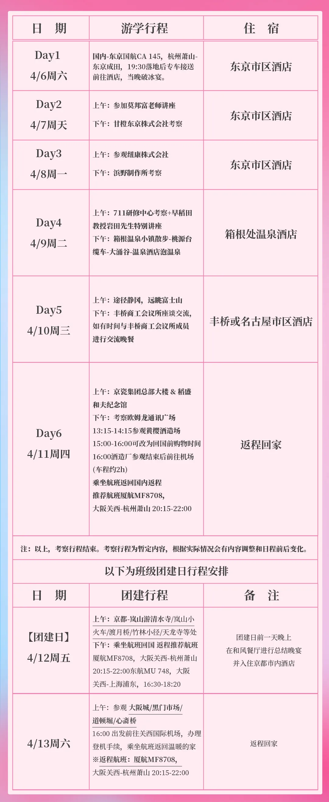 為了增強班級凝聚力,也為本次《冠軍之旅》增添更多美好的回憶素材,在結束游學(xué)參訪(fǎng)之后,課研組還將組織一場(chǎng)異國的班級團建。