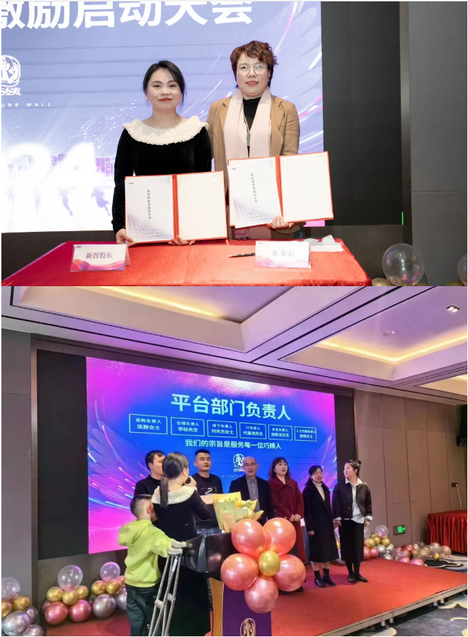 04| 終于,在多次入企調研和診斷后,“巧姨”創(chuàng )業(yè)共享平臺成立儀式于2023年底正式開(kāi)啟,雙童商學(xué)院執行院長(cháng)周上趕往儀式現場(chǎng)致辭、祝賀!