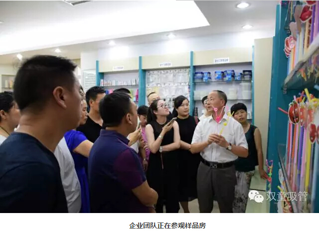 接著(zhù),大家來(lái)到了樣品房。大家也被琳瑯滿(mǎn)目的各類(lèi)吸管所吸引,尤其是各類(lèi)功能情趣的創(chuàng )新吸管,它顛覆了大家腦海里幾分幾厘的普通吸管,而是轉變?yōu)閹讐K錢(qián)一支的高端產(chǎn)品,更是讓每個(gè)人都嘖嘖稱(chēng)奇,贊嘆“雙童”的創(chuàng )新力之強。