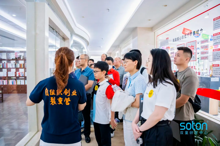 講解員帶領(lǐng)大家來(lái)到“雙童”眾創(chuàng )空間