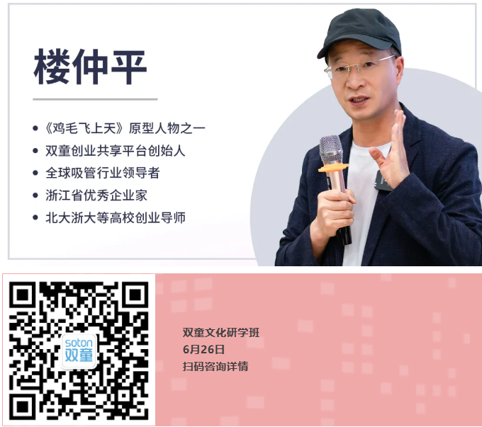 如果你也對“雙童”充滿(mǎn)好奇,也想賦能團隊共同成長(cháng),歡迎走進(jìn)6月26日【雙童文化研學(xué)班】,與上百位優(yōu)秀的創(chuàng )業(yè)者一起學(xué)習!少量名額,歡迎咨詢(xún)鎖定!