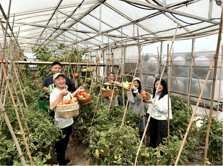 一走進(jìn)菜園,當家人樓總就帶著(zhù)小伙們開(kāi)啟“戰斗”模式,毫不夸張,只一會(huì )兒功夫,黃瓜、番茄被裝滿(mǎn)了一筐又一筐,這種在工廠(chǎng)里也能貼近自然的農家生活,真的超幸福!