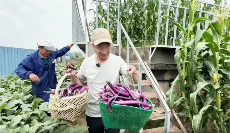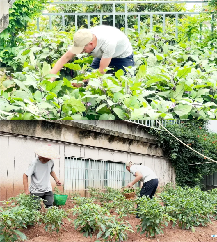 !而且,既然是“蔬菜大放送”,肯定是多多益善了~所以,等到這邊摘得差不多了,樓總又帶著(zhù)“摘菜小分隊”轉移陣地,前往另一個(gè)屋頂菜園!