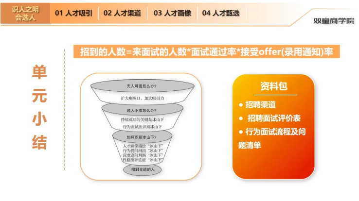 所以,《中堅力量》第二模塊將由雙童商學(xué)院中堅力量課程老師高熙昀、雙童商學(xué)院法律顧問(wèn)吳軍財和雙童第五創(chuàng )業(yè)體總經(jīng)理周上三位老師共同完成交付,分別從選人、育人、用人、留人和裁人5個(gè)方面,提升管理者“有溫度帶人”的能力!