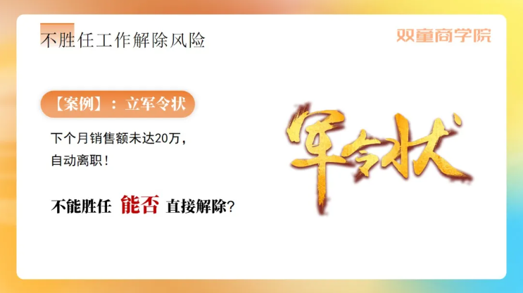 吳軍財老師在《優(yōu)才之術(shù)-懂裁人》交付中,更多以實(shí)際出發(fā),詳細剖析了企業(yè)在人才優(yōu)化過(guò)程中會(huì )面臨的主要用工風(fēng)險,如勞資糾紛問(wèn)題、經(jīng)濟補償金/賠償金支付問(wèn)題、不同時(shí)期合同解除風(fēng)險、加班費支付等,并結合以上問(wèn)題給出了出相應的規避策略:管理者要熟練掌握基礎用工規范、提升談判能力、強化取證能力 、完善自我提升,為企業(yè)搭建一套合理、合法、合規的用工體系!