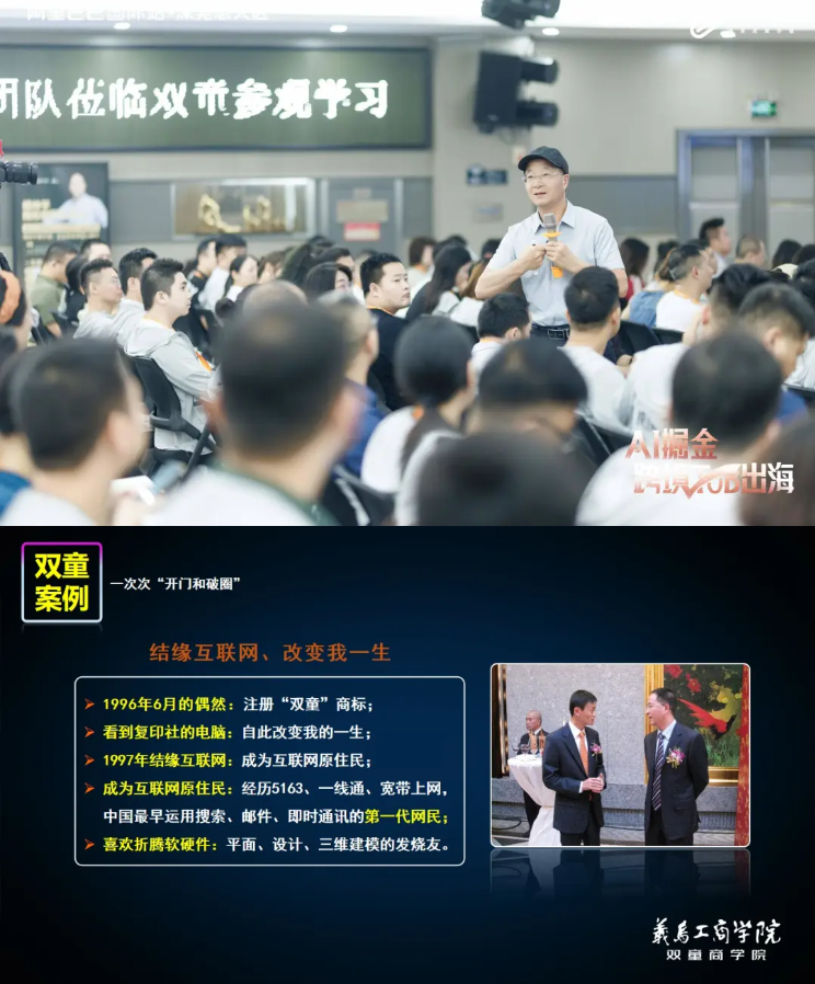 早在1996年注冊“雙童”商標時(shí),自己就開(kāi)始學(xué)習電腦應用,成為中國互聯(lián)網(wǎng)的原住民。并在數字化工具加持下,為“雙童”率先打開(kāi)了國際市場(chǎng),短短幾年時(shí)間,超越同行,奠定了成為行業(yè)冠軍的基礎。
