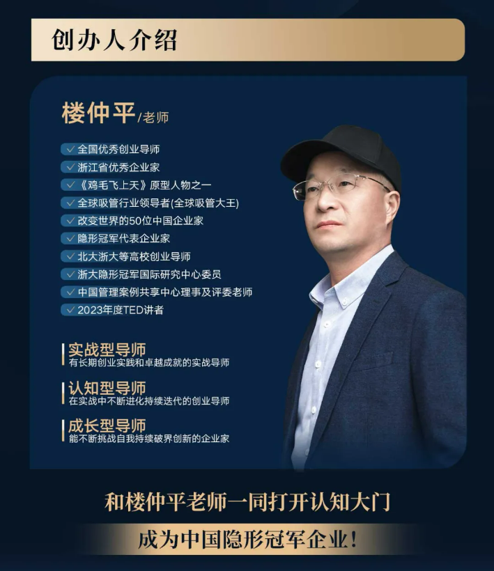 如果你是創(chuàng )業(yè)者、學(xué)習者、思想者,希望在經(jīng)營(yíng)領(lǐng)域有自己的思考和洞察,那么《隱形冠軍樓仲平思享薈》就是為你量身定制,今年最后一期招生,一班只招40位同學(xué),名額所剩不多,抓緊機會(huì )哦!