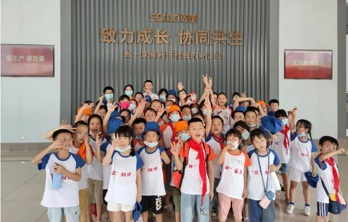 吸管妞在百米文化長(cháng)廊前,通過(guò)一幅幅鮮活的畫(huà)面,為同學(xué)們講述了雙童創(chuàng )始人樓仲平伯伯“雞毛換糖”的創(chuàng )業(yè)經(jīng)歷。聽(tīng)到在那個(gè)年代還吃不飽飯,同學(xué)們紛紛表示要珍惜現在美好的生活!