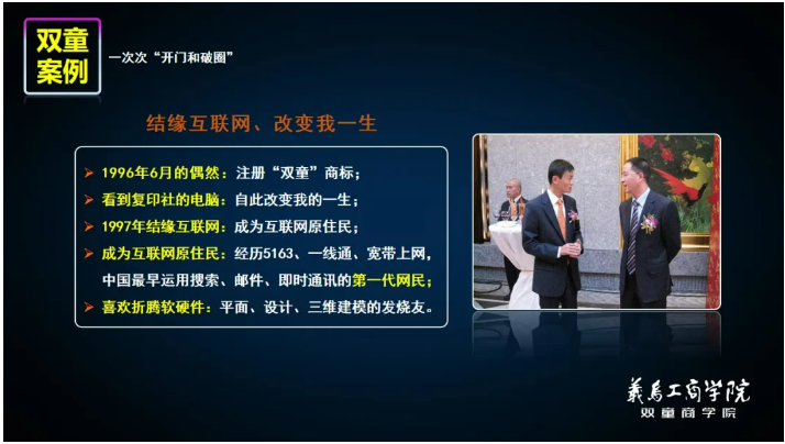 早在1996年注冊“雙童”商標時(shí),自己就開(kāi)始學(xué)習電腦應用,成為中國互聯(lián)網(wǎng)的原住民。并在數字化工具加持下,為“雙童”率先打開(kāi)了國際市場(chǎng),短短幾年時(shí)間,超越同行,奠定了成為行業(yè)冠軍的基礎。