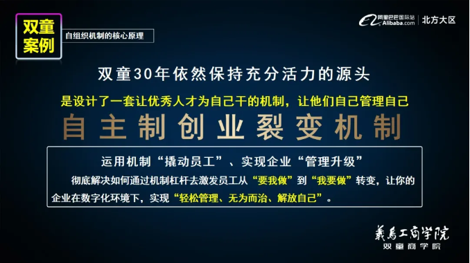 面對數字化挑戰,“雙童”決定結合多種組織機制和中小企業(yè)的特點(diǎn),自制了一套適用于中小企業(yè)的組織創(chuàng )新制度——自主制創(chuàng )業(yè)裂變機制,讓員工從“要我做”到“我要做”轉變。