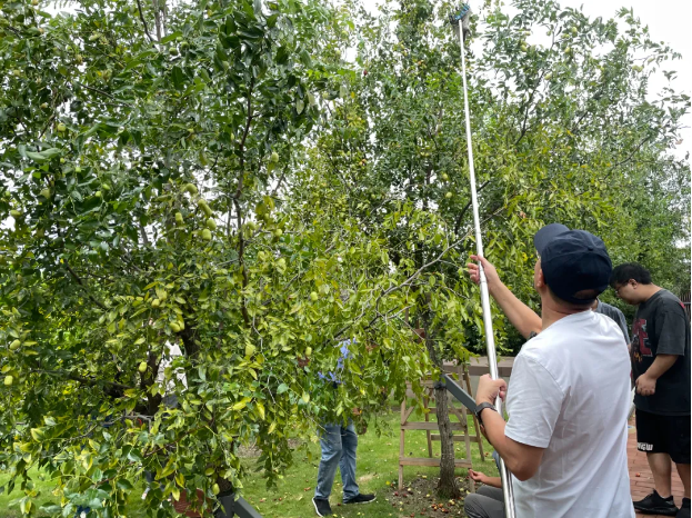 如果你也想重回一下兒時(shí)的時(shí)光,不妨9月11日,來(lái)“雙童”試試,很有趣哦~去年跟著(zhù)老板打棗的情景歷歷在目,為了能將棗子裝滿(mǎn)自己的小籃子,用手搖、用竹竿敲、爬梯子摘、在樹(shù)下?lián)炻蠹摇案黠@神通”!▲ 為了打到棗子,各顯神通