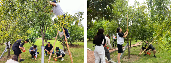 ▲樓老師帶著(zhù)同學(xué)們在課間采摘~