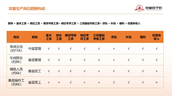 在“雙童”,是沒(méi)有“死工資”的。即使是車(chē)間一線(xiàn)員工的薪資,也有非常完善的薪酬績(jì)效體系,從而有效解決了很多制造業(yè)工廠(chǎng)所面臨的“員工計時(shí)工資不出量,計件工資不保質(zhì)”的難題!