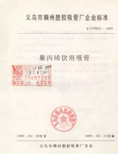 1998年 | 《聚丙烯飲用吸管》企業(yè)產(chǎn)品標準 |