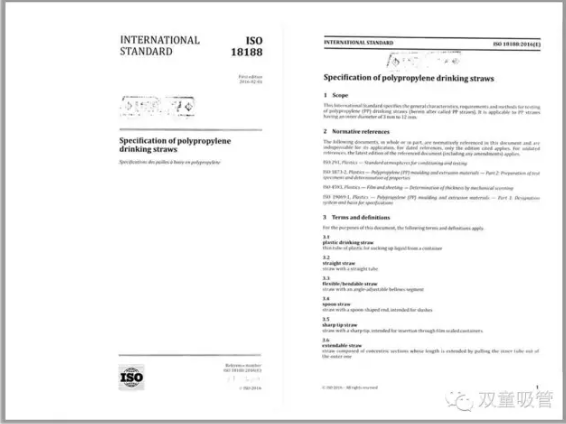 2016年 | 《聚丙烯飲用吸管規范》ISO國際標準 |