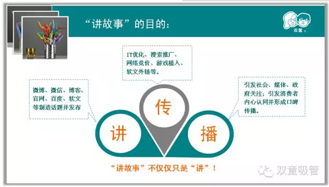 而“雙童”在品牌推廣的過(guò)程中,其實(shí)也是分階段的。從硬廣時(shí)期,每年投入200多萬(wàn)元做廣告,到后來(lái)的塑造差異化亮點(diǎn),引導媒體給“雙童”講故事,再到成立文宣部門(mén),形成團隊“講故事”,最后達到形成企業(yè)文化,形成口碑傳播。這是一條漫長(cháng)的道路,需要“雙童”人持之以恒的堅持和努力!