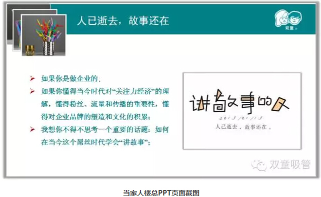 當家人也總結:“講故事”一定要形成團隊,因為沒(méi)有團隊運營(yíng)的分工是沒(méi)有傳播系統性可言的,更沒(méi)有規范性,談不上是系統性的品牌塑造!