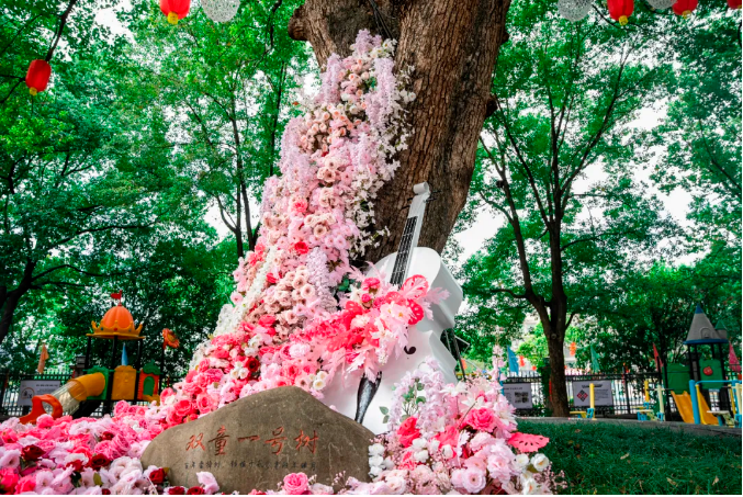 一號樹(shù)下的絢爛花墻,色彩斑斕,美不勝收,瞬間成為了“雙童”內部炙手可熱的“網(wǎng)紅打卡點(diǎn)”。
