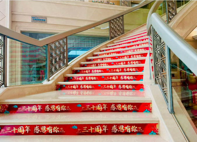 為了慶?!半p童”30周年,就連作為樓層間溫馨紐帶的樓梯,也被賦予了特別的意義。這個(gè)小小的空間貼滿(mǎn)了三十周年祝福語(yǔ),成為了“雙童”人每日穿梭間的一道亮麗風(fēng)景線(xiàn)~