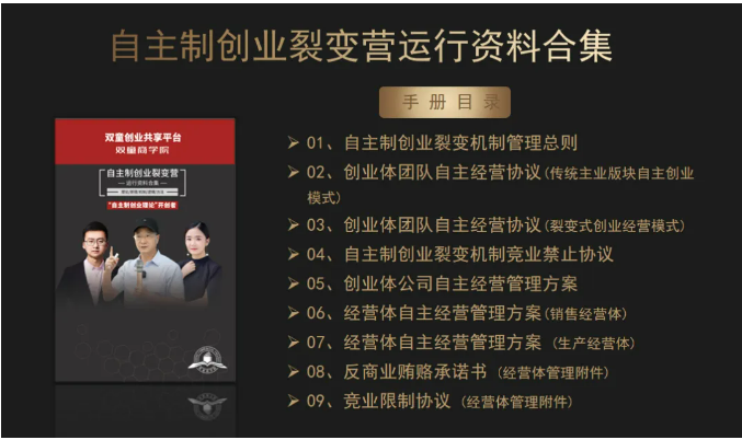 3、交付自主制創(chuàng )業(yè)裂變模式的各項規則、文本、合同等書(shū)面資料