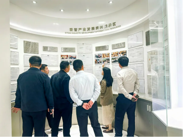 講解員為考察團一行介紹“雙童”的吸管標準文件