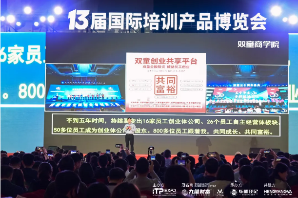 借助平臺的賦能和樓總個(gè)人品牌的影響,周上院長(cháng)與小伙們經(jīng)過(guò)3年的不懈努力,成功把雙童商學(xué)院打造成了中國實(shí)戰類(lèi)創(chuàng )業(yè)教育培訓的頭部商學(xué)院!僅2023年,就接待了來(lái)自全國各地21300人次到“雙童”學(xué)習,2024年預計超過(guò)3萬(wàn)人次!雙童商學(xué)院的快速發(fā)展,也有力地帶動(dòng)了平臺的業(yè)績(jì)增長(cháng)!從前年開(kāi)始,雙童商學(xué)院把“雙童”的落地實(shí)操方法與成功經(jīng)驗經(jīng)驗有機結合,將這套裂變機制打磨成了可復制、落地的管理課程。創(chuàng )始人樓仲平更是閉關(guān)3個(gè)月,執筆編撰了30多萬(wàn)字《自主制創(chuàng )業(yè)裂變營(yíng)運營(yíng)資料合集》作為裂變機制在企業(yè)內推行的指導文本!目前,《自主制創(chuàng )業(yè)裂變營(yíng)》已經(jīng)完成了近2300人次課程交付,已有不少學(xué)員取得了喜人的成績(jì),看得見(jiàn)的成果更是讓學(xué)員們自發(fā)為課程代言、傳播,并推薦自己身邊的朋友前來(lái)學(xué)習。