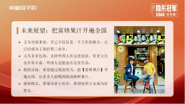 雷鋒老師告訴同學(xué)們,截至目前,“雷鋒果汁”已成功開(kāi)設了七家分店,且其業(yè)務(wù)持續繁榮的背后,主要得益于四大核心推動(dòng)因素: