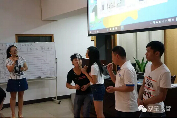 先不講PPT,玩游戲?啥游戲?往下看你就知道啦!現場(chǎng)被分為兩組,大伙用嘴叼著(zhù)吸管傳杯子。用時(shí)最短的是同一車(chē)間較為熟悉的團隊,他們在游戲前經(jīng)過(guò)溝通協(xié)商,可見(jiàn)團隊協(xié)作的重要性呢!