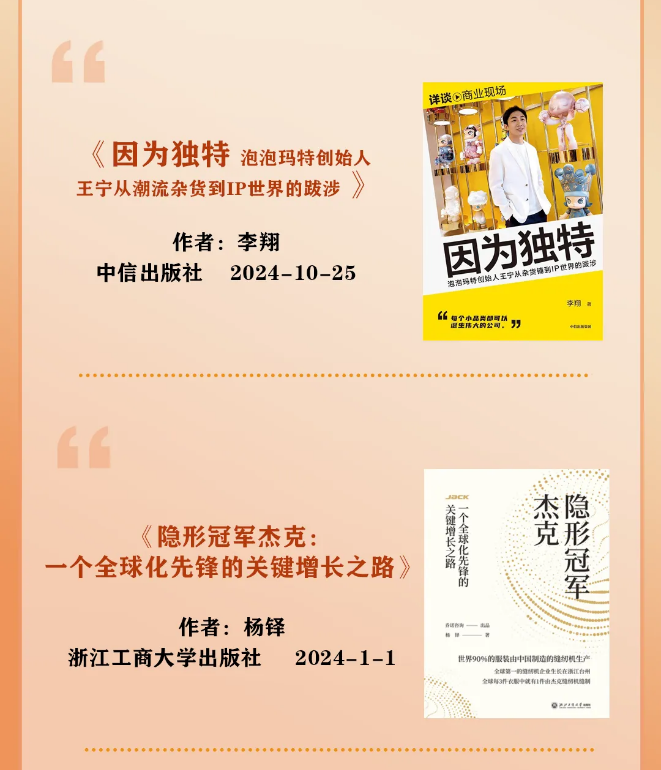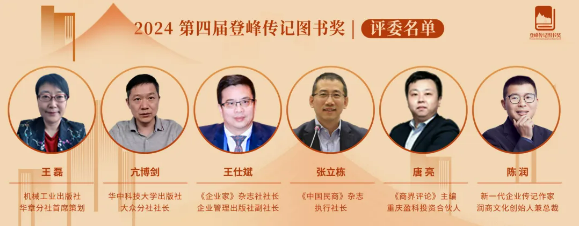 該榮譽(yù)由機械工業(yè)出版社華章分社首席策劃王磊、華中科技大學(xué)出版社大眾分社社長(cháng)亢博劍、《企業(yè)家》雜志社社長(cháng)/企業(yè)管理出版社副社長(cháng)王仕斌、《中國民商》雜志執行社長(cháng)張立棟、《商界評論》主編/重慶盈科投資合伙人唐亮、新一代企業(yè)傳記作家/潤商文化創(chuàng )始人兼總裁陳潤等專(zhuān)業(yè)人士擔任評委,共同評選見(jiàn)證,含金量超高!