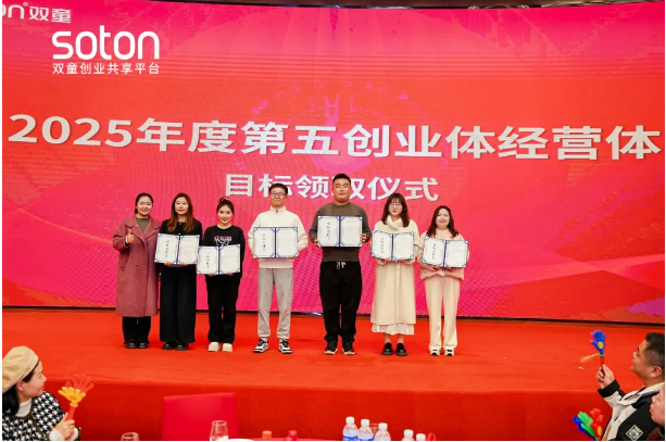 啟航新歲,目標煥新!在全體"雙童人"的共同矚目下,各創(chuàng )業(yè)體總經(jīng)理、經(jīng)營(yíng)體體長(cháng)登臺,領(lǐng)取了2025年度目標!