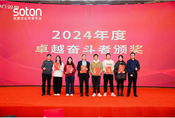 隨后,由雙童創(chuàng )業(yè)共享平臺總經(jīng)理李二橋上臺總結與展望。他回顧了充滿(mǎn)挑戰的2024年,這一年里,“雙童”獲得2024ESG杰出浙商、浙江省科學(xué)技術(shù)進(jìn)步三等獎、工業(yè)企業(yè)50強、納稅千萬(wàn)企業(yè)、義烏市的第一批白名單企業(yè)、省隱形冠軍......這一路上真可謂是關(guān)關(guān)難過(guò)關(guān)關(guān)過(guò),正是來(lái)自五湖四海的”雙童人“辛勤奮斗,才能讓“雙童”在這個(gè)充滿(mǎn)變數的時(shí)代里,依然能夠揚帆破浪,不斷開(kāi)創(chuàng )更加耀眼的輝煌篇章!