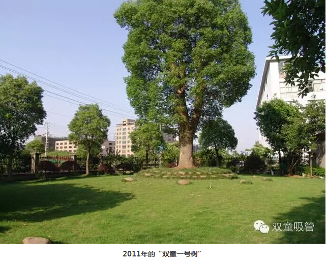 而這張,則是“雙童1號樹(shù)”在2013年時(shí)的模樣了!這時(shí)的它就像一把大大的綠傘,把“雙童”的整個(gè)大草坪都給包住了!平日里三大五粗的吸管君在它的映襯下,都顯得苗條了不少呢!