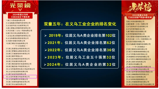雙童是一家30年的制造業(yè)企業(yè),是隱形冠軍企業(yè),也是義烏工業(yè)企業(yè)50強,連續多年列入義烏A類(lèi)工業(yè)企業(yè)名單,實(shí)力與信譽(yù)兼備!