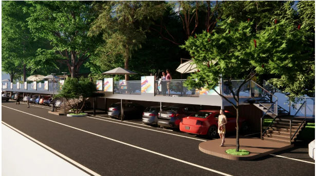 雙童的百米文化長(cháng)廊對面正是一片樹(shù)林和停車(chē)場(chǎng),只需要設計一個(gè)懸空走廊,既保住了原有的樹(shù)木,還留住了停車(chē)場(chǎng)地,又可以有一塊新的員工休閑區,三全其美!