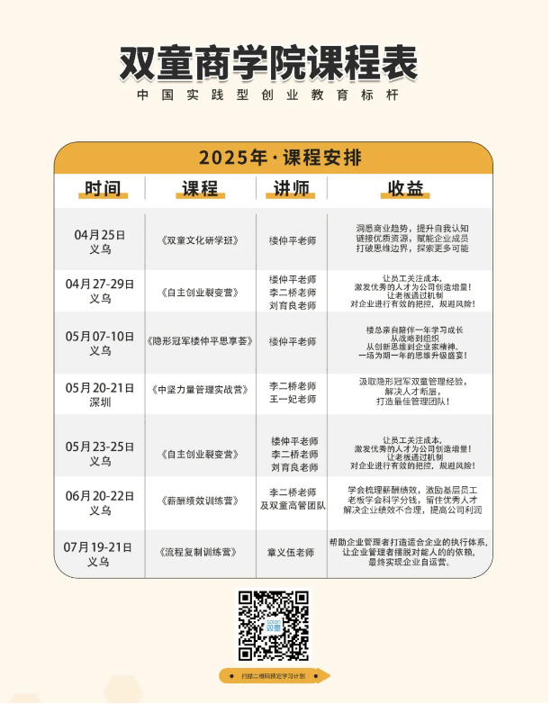 在正式完工后,這條森林文化長(cháng)廊也將會(huì )成為《雙童文化研學(xué)班》的游學(xué)站點(diǎn)之一,如果想更近距離地了解學(xué)習“雙童”的企業(yè)文化,歡迎走進(jìn)4月25日【雙童文化研學(xué)班】,與來(lái)自全國的創(chuàng )業(yè)者們共同學(xué)習企業(yè)經(jīng)營(yíng)管理之道!