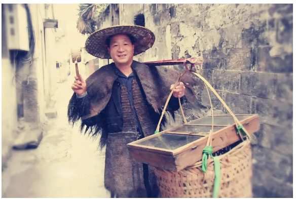 義烏市場(chǎng)的第一步其實(shí)是從我們大家挑貨郎擔開(kāi)始的,我們的祖先將紅糖拿去交換主糧,從而形成了以貨易貨”的商業(yè)形態(tài),也就是“雞毛換糖”。