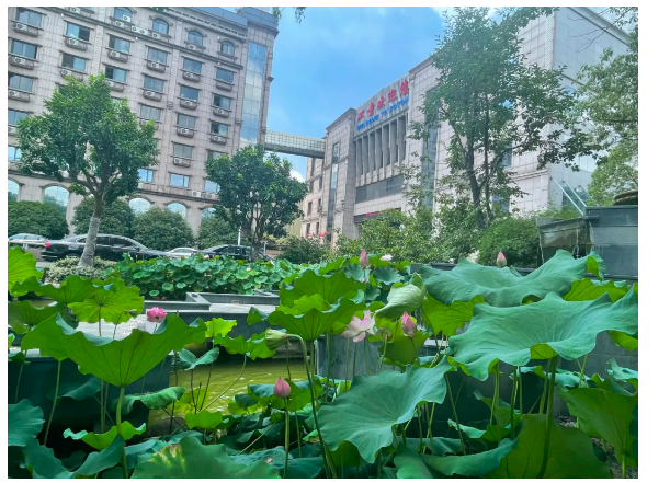 夏天的傍晚,員工們三兩成群漫步橋畔,沉醉荷池美景。聽(tīng)瀑布潺潺,看斜陽(yáng)映水,魚(yú)兒游弋,簡(jiǎn)直美得像一幅畫(huà)~