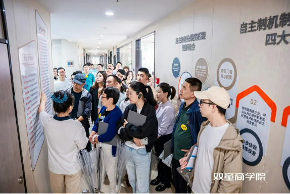 在游學(xué)過(guò)程中,講解員還會(huì )邀請到創(chuàng )業(yè)體總經(jīng)理為大家一一介紹“雙童”自主創(chuàng )業(yè)裂變機制具體落地方式、以及各經(jīng)營(yíng)體是如何劃分、創(chuàng )業(yè)體是如何裂變出來(lái)、二者與母體公司的關(guān)系及選拔機制。