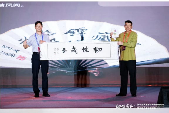 分享一結束,天雁董事長(cháng)張迎賓先生更是第一時(shí)間為樓老師送上了精心準備的書(shū)法作品!
