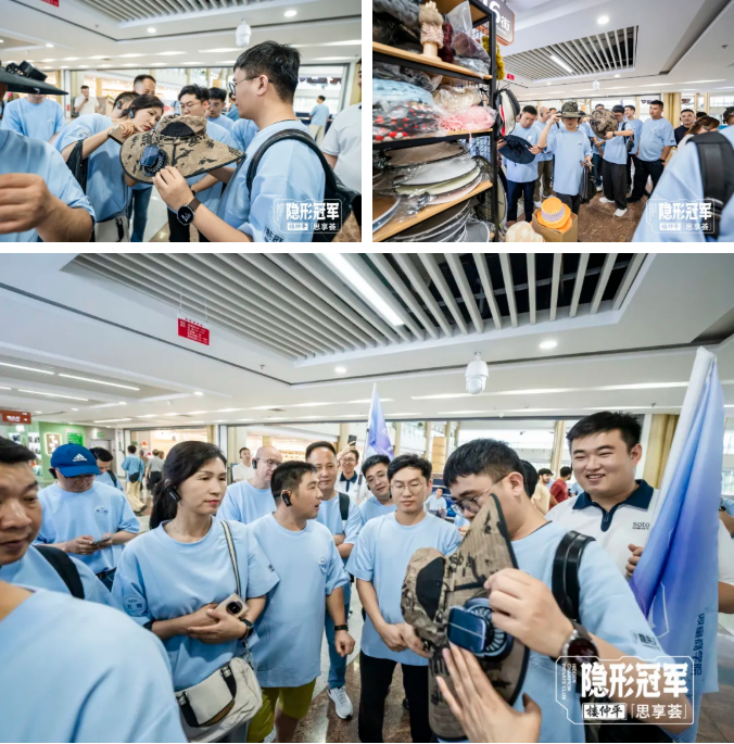 從雙童的商位出來(lái)后,樓老師又帶領(lǐng)大家來(lái)到了帽業(yè)商區,其中一款太陽(yáng)能風(fēng)扇帽就是最近在Tik Tok上瘋狂爆單的新品。通過(guò)交流,大家學(xué)習到了傳統貿易如何借助線(xiàn)上線(xiàn)下渠道融合打通,實(shí)現行業(yè)爆火增長(cháng)的實(shí)戰經(jīng)驗。