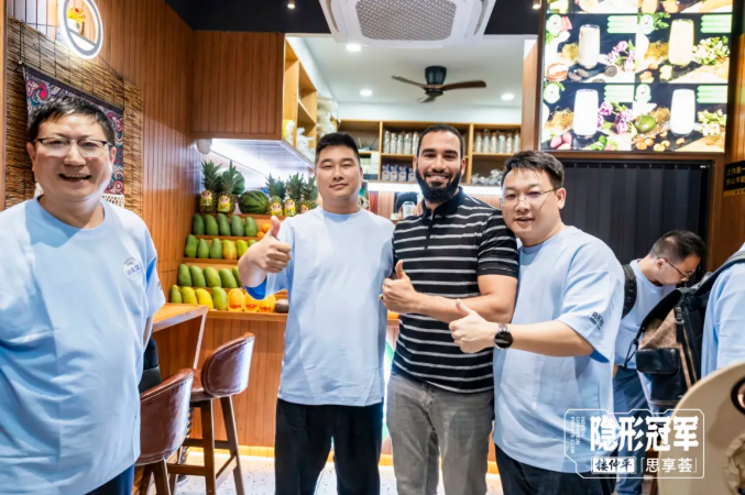 2015年來(lái)義烏“闖蕩”的埃及商人雷鋒,也是在開(kāi)學(xué)模塊為同學(xué)們分享創(chuàng )業(yè)故事的特邀嘉賓,他在義烏開(kāi)了多家“雷鋒果汁”連鎖店。研學(xué)參觀(guān)結束后,樓老師也帶同學(xué)們去到他的店里打卡。