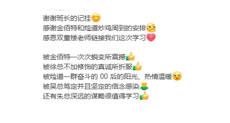 從燴道辦公區域墻壁上的核心價(jià)值觀(guān),到生產(chǎn)一線(xiàn)精準執行的管理細則,大家直觀(guān)感受到了“以?shī)^斗者為本”的理念如何滲透到企業(yè)肌理、融入日常運營(yíng);通過(guò)觀(guān)摩一線(xiàn)車(chē)間的操作與管理流程,研學(xué)標準化在提高生產(chǎn)效率、保障產(chǎn)品品質(zhì)中的重要作用。