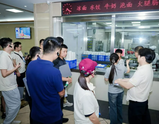 在“雙童”,所有基礎設施都是用的當時(shí)最好的材質(zhì),像食堂的餐椅,是樓總在2003年進(jìn)口的緬甸柚木王餐桌,造價(jià)不菲,歷久彌新,也是“雙童”長(cháng)期主義的體現之一。此外食堂堅持“五小碗”原則,堅持垃圾分類(lèi),為環(huán)保做出自己的貢獻。游學(xué)結束后,大家中午也紛紛入座食堂,在這里體驗“雙童”的員工餐。