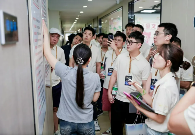 在游學(xué)過(guò)程中,講解員帶領(lǐng)研學(xué)班學(xué)員們走進(jìn)各創(chuàng )業(yè)體辦公室,并在參觀(guān)的過(guò)程中,邀請各創(chuàng )業(yè)體總經(jīng)理現場(chǎng)解答“雙童”各創(chuàng )業(yè)體是如何裂變出來(lái)的,以及《自主創(chuàng )業(yè)裂變機制》具體落地方式,跟母體公司的關(guān)系,創(chuàng )業(yè)體經(jīng)理的選拔機制等大家關(guān)心的問(wèn)題。