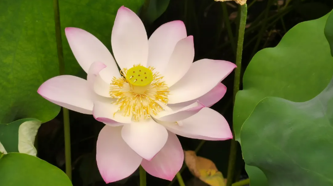 粉嫩的荷花亭亭玉立于層疊的綠葉之間,有重瓣的,有單瓣的,微風(fēng)拂過(guò),不僅攜來(lái)縷縷清新的荷香,還撩動(dòng)水面,露出小小的蓮蓬,陽(yáng)光斜照,為蓮花增添了一份光環(huán)。