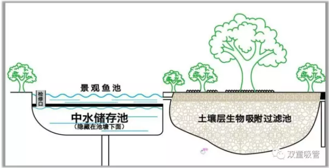 (上層是景觀(guān)魚(yú)池,下層是中水儲存池)