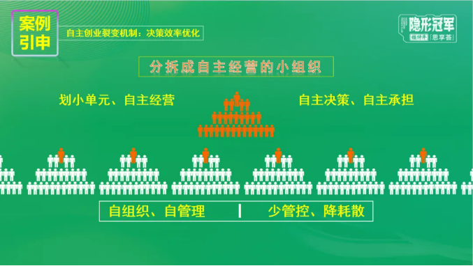 正如雙童自主創(chuàng )業(yè)裂變機制中的劃小單元、拆分自主經(jīng)營(yíng),便是治理優(yōu)化結構優(yōu)化決策鏈,減少官僚和博弈的一大例證,極大提高了人效。