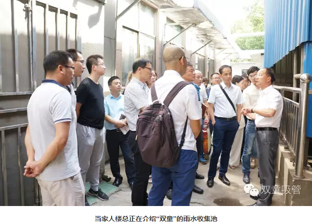 下午,當家人樓總帶大家參觀(guān)起了“雙童”廠(chǎng)區。一行人先是來(lái)到了我們的中水回用池,樓總給眾人講解了我們“雙童”的廢水循環(huán)利用的系統和原理,之后又參觀(guān)了雨水收集處、垃圾分類(lèi)站、九樓菜園等地。眾人對“雙童”這種生態(tài)循環(huán)、為社會(huì )節約資源的做法點(diǎn)了一個(gè)大大的贊。