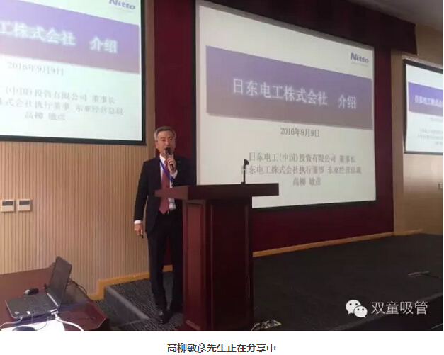 第一位分享嘉賓是連續5年被選入湯森路透“全球百強創(chuàng )新企業(yè)機構2015”排名榜的日東電工(中國)投資有限公司董事長(cháng)高柳敏彥。他通過(guò)日文翻譯向在座各位作了《百年企業(yè)創(chuàng )三新之路》的演講,講解了日東電工幾十年發(fā)展歷程中如何“靠一招鮮創(chuàng )新”。