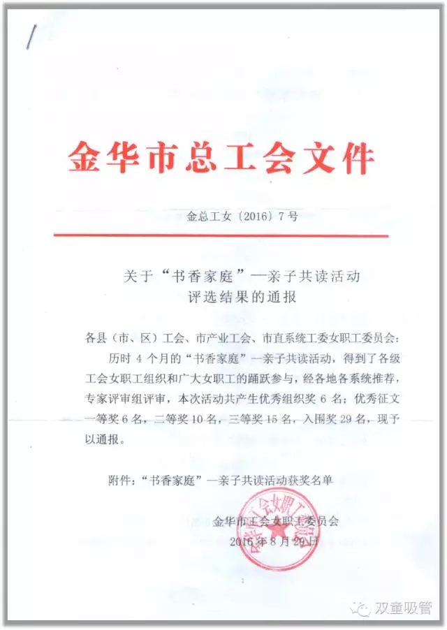 不過(guò),好消息還沒(méi)結束!沒(méi)過(guò)多久,這篇讀后感又被作為優(yōu)秀作品,參選了金華總工會(huì )的比賽評選,并獲得了優(yōu)秀獎呢!吸管妞仔細看了一下,沒(méi)想到“雙童”竟然是所有60家獲獎單位里唯一一家企業(yè)單位呢!要知道,參加這類(lèi)比賽并且獲獎的基本上可都是各大學(xué)校和事業(yè)單位??!我們的“雙童”寶貝是不是很棒呢!下面妞就把這篇讀后感放上來(lái)和大家共享,一起和孩子感受“愛(ài)的教育”吧!